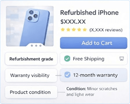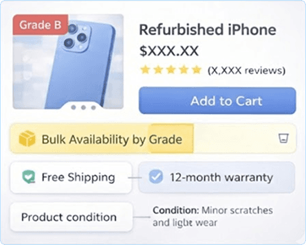 Corporate shoppers reported difficulties when placing bulk orders due to a lack of clarity regarding item availability across different refurbishment grades. Detailing product availability by grade increased CVR by 10.1% at a 90% confidence level.